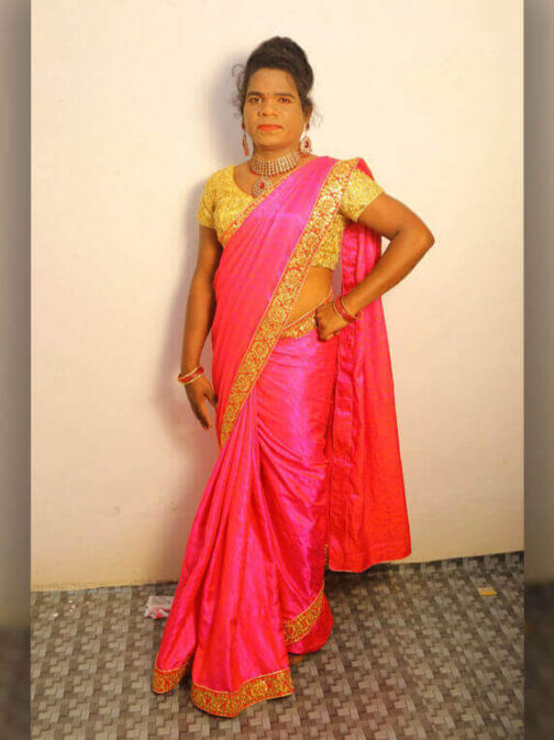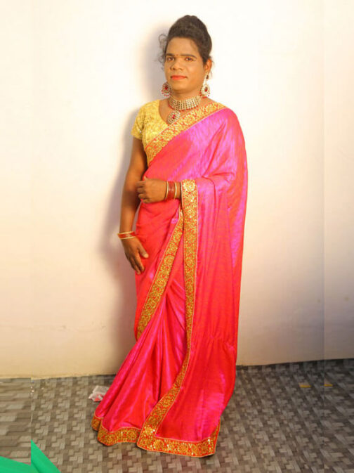 Saree Fabric: Double color chiffon silk Magenta pink with gol Blouse Fabric: Silk Blouse Pattern: Intricate & heavy “Maggam” work with breast form One Size Fits All: Color: Pink Sari with Gold Border Note: Jewelry not included |